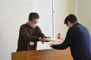 表彰式では山本康世理事長の代理として、久市徹業務執行理事から、永きにわたりふるさと自然村の発展に寄与されてこられた職員に対する永年勤続表彰や、資格試験に合格された職員の発表などが行われました。